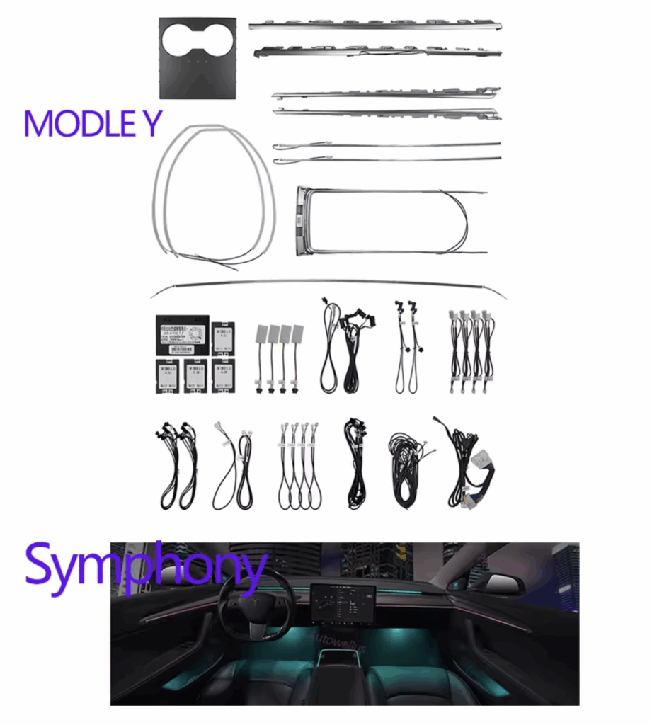 Es gibt viele Ambient Lights Sets für Model Y im Internet, die in einer sehr breiten Preis-Range liegen. Ich wollte unbedingt die Einfachheit des Cockpits bewahren, sodass ich ein Set zwar mit umschaltbaren Farben aber mit keinem eigenen Display gesucht habe. Ausser einer Leiste die von hinten bis übers Cockpit rund ums Auto geht, wollte ich auch passendes Licht in der Mittelkonsole, zweite, dezente Leiste auf dem Dashboard, Fussräume, Sitzlehnen hinten und Seitentaschen in der passenden Farbe steuerbar machen. Dieses Ambient Light Set für Tesla Model Y entsprach tatsächlich meinen Kriterien. Diesen Kriterien entsprach tatsächlich ein Set auf Ali-Express, was aber nicht gerade günstig war: inkl. Versand: CHF 403.29
