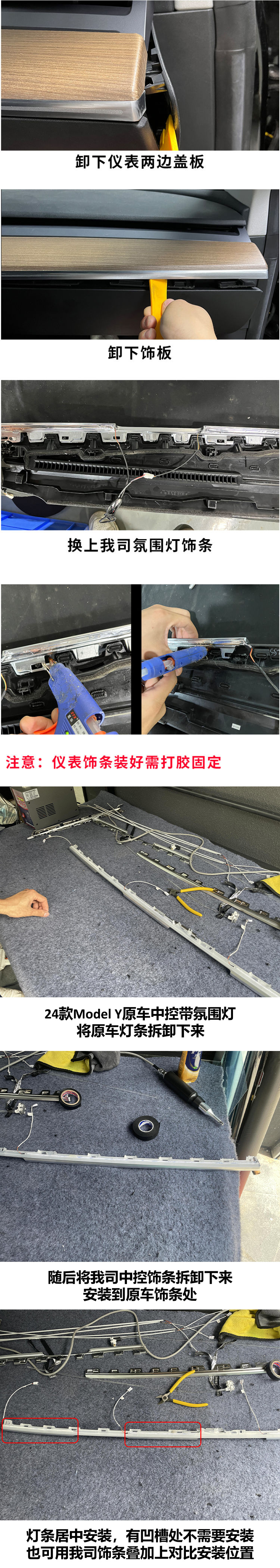 Ich wollte das von Anfang an als ein DIY Projekt machen und wusste, dass viel Arbeit auf mich zukommt. Tatsächlich hatte ich es geschafft an zwei Wochenenden das Projekt im September 2023 in unserer Tiefgarage fertig zu stellen. Das Ambient Light für Tesla Model Y war eine spannende Herausforderung. Insgesamt habe ich cs. 12-13 Stunden aufgewendet. Der schwierigste Schritt war das Durchreichen vom Kabel durch die flexiblen Kabelschächte der Türen, die ohnehin schon recht eng sind. Zum Umbau habe ich keine Hebebühne benötigt, aber etwas mehr Platz rechts und links um das Auto und gutes Licht war extrem von Vorteil. Gewöhnlicher Werkzeug-Kasten, viel Geduld und etwas Geschick, mehr braucht man dazu eigentlich nicht.