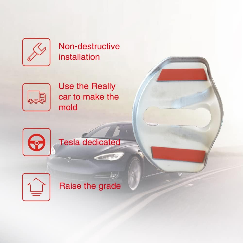 Dieses Set aus vier hochwertigen Türschloss-Abdeckungen aus rostfreiem Edelstahl schützt die Schlösser Deines Tesla vor Kratzern, Staub und Korrosion. Kompatibel mit Tesla Model 3, Model Y, Model S und Model X.